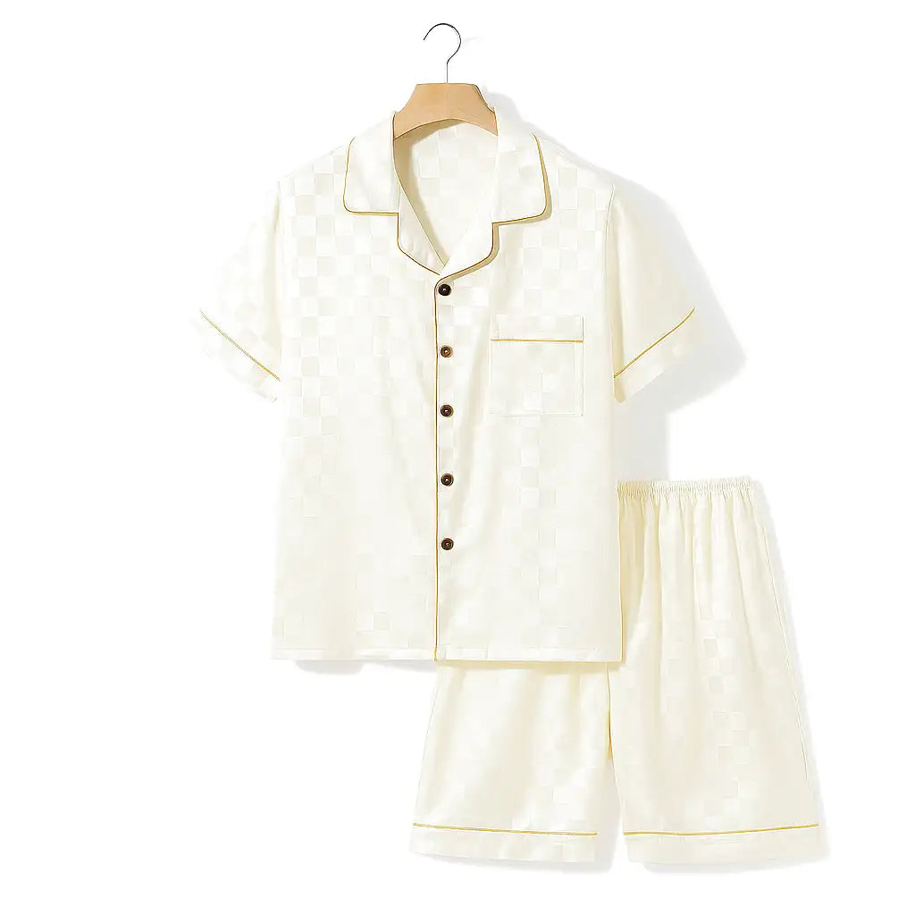 Ce pyjama se démarque grâce à son design ajusté contemporain, ses finitions minutieuses et son tissu satiné qui s'adapte parfaitement à la peau, assurant ainsi une grande liberté de mouvement.